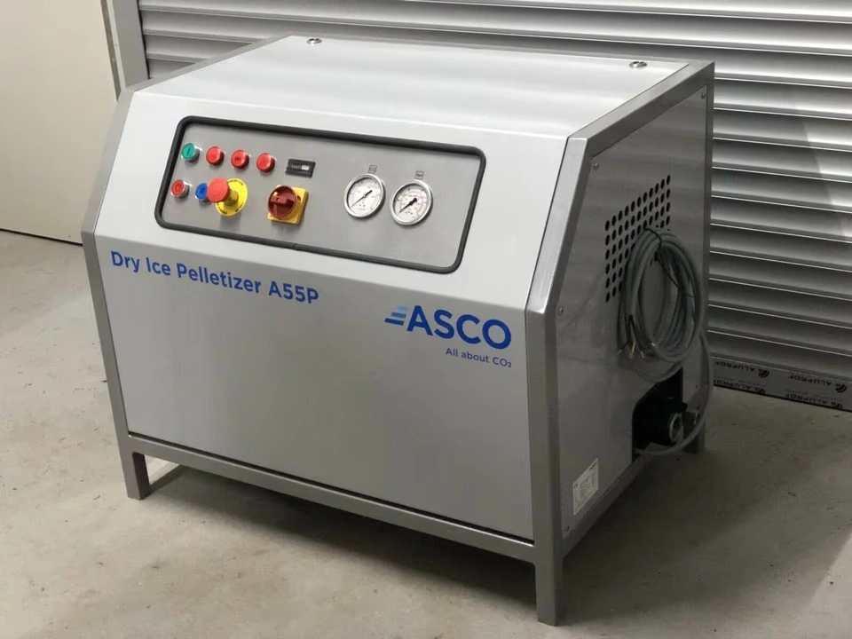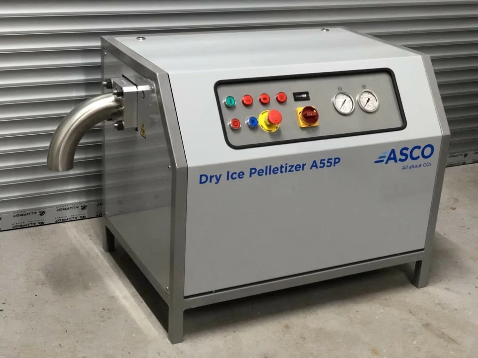 Der ASCO Trockeneis-Pelletizer A55P ist mit seiner Produktionskapazität von 55 kg pro Stunde ideal für den Aufbau einer kleineren Trockeneisproduktion.