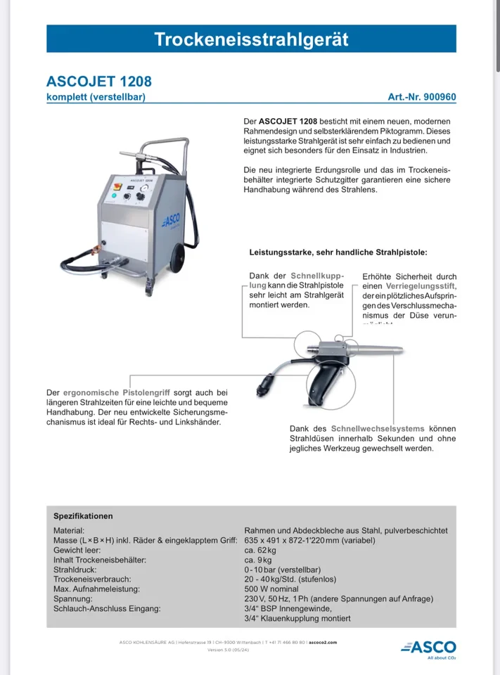 Trockeneisverbrauch: 0 – 60 kg/h – stufenlos regulierbar / anwendungsabhängig